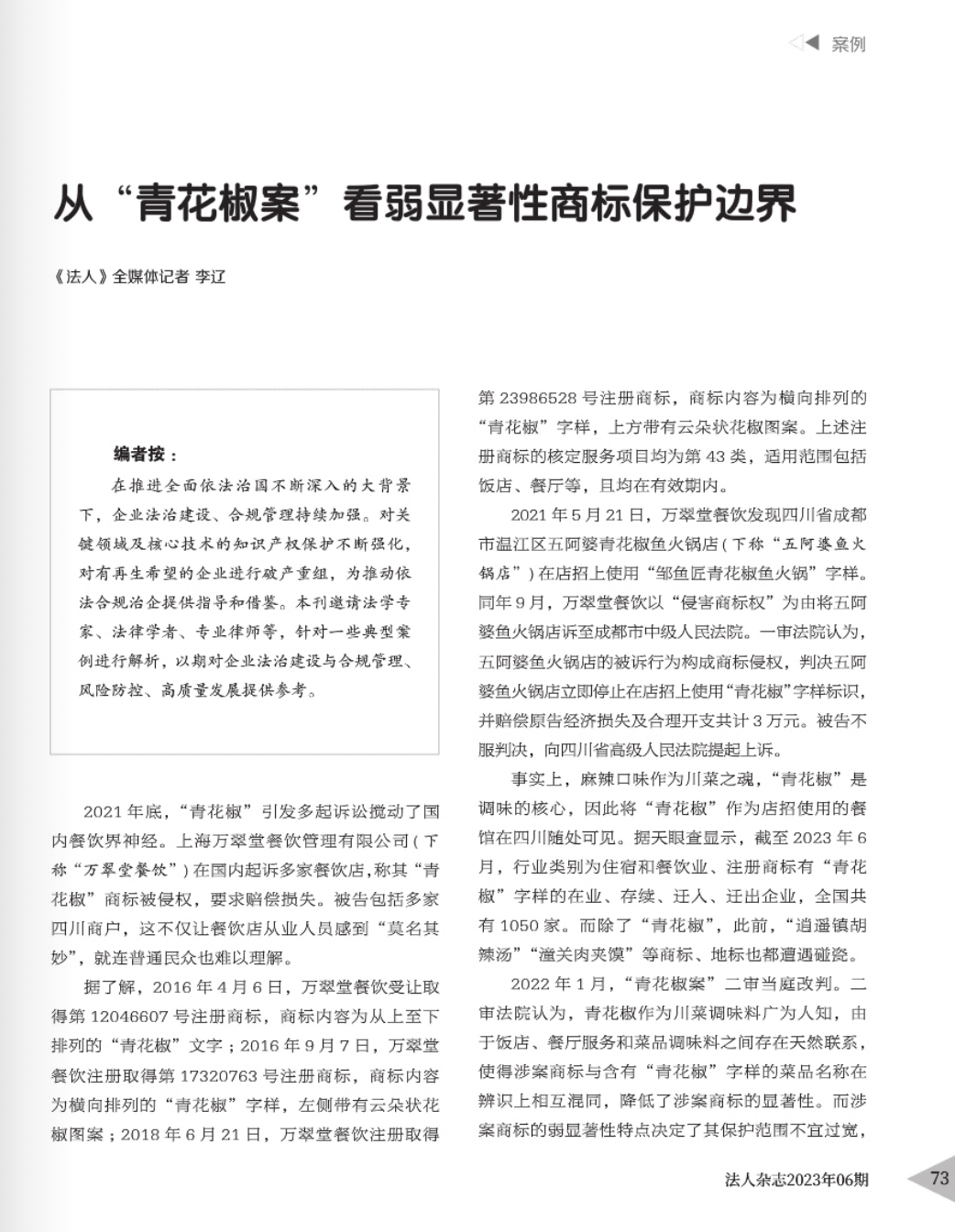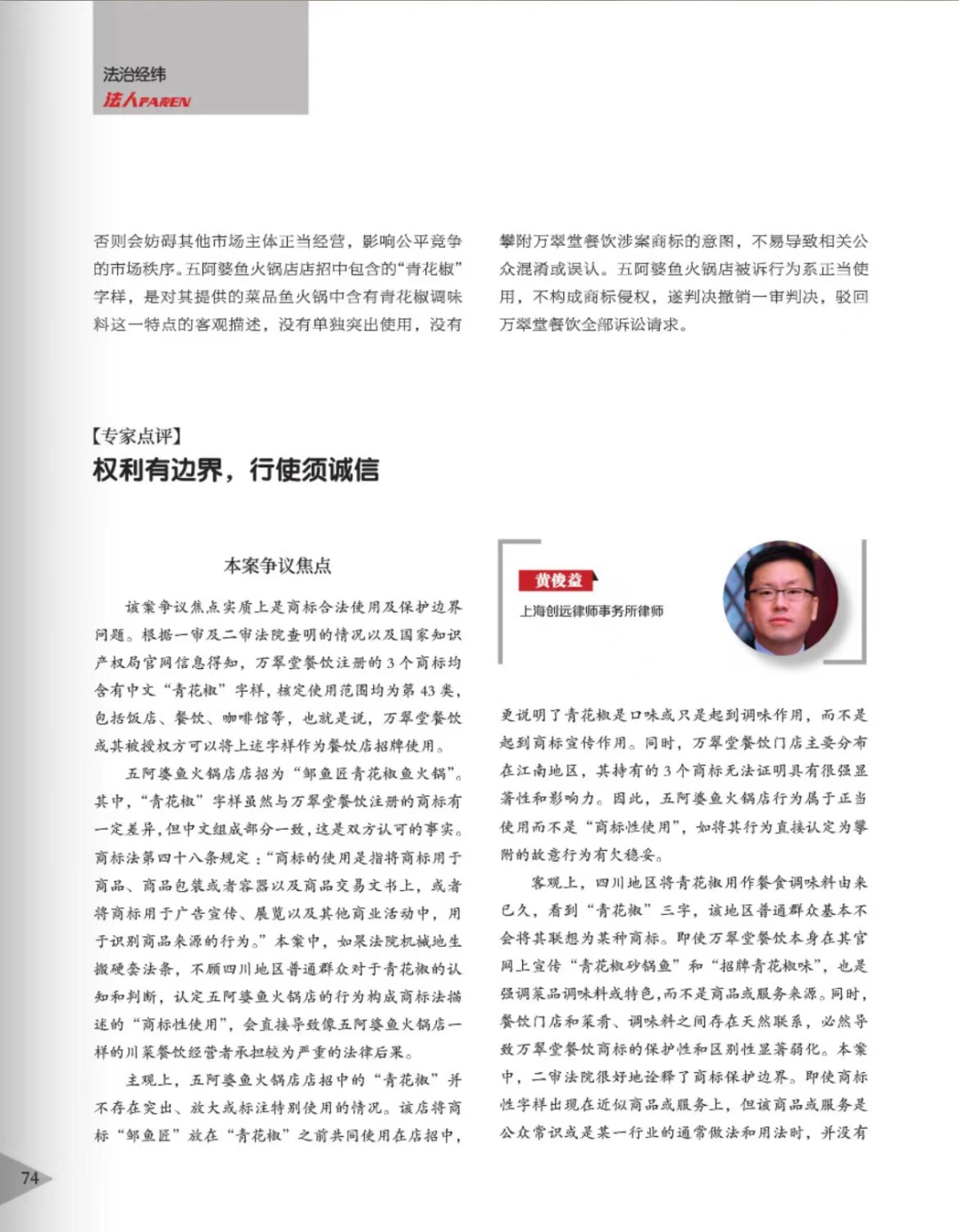 临沧辉知简讯 | 辉知队黄俊益律师应“法治日报”旗下杂志邀请,就“青花椒”案发表专家点评